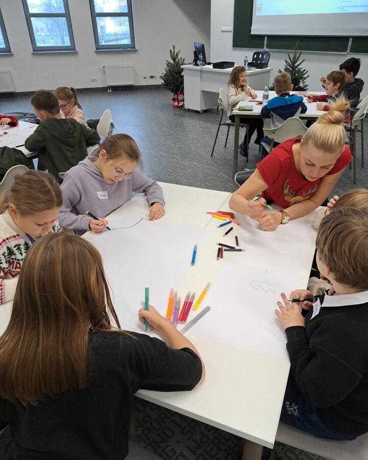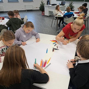 "Jak odnaleźć w sobie inspirację?" to temat grudniowego spotkania. Nasi najmłodsi studenci na przykładzie „Magicznej Krainy Podszeptu” Joanny Zator-Peljan szukali inspiracji do zakończenia opowiadania. Co więcej, każda spisana historia, każda powstająca książka ma swoją budowę. Nasi uczestnicy wiedzą już z czego składa się książka, jak zbudowana jest opowieść. Inspiracją dla jednych było tworzenie indywidualnej ilustracji do zakończenia opowieści, dla innych inspiracją było realizowanie wspólnego projektu. W ruch poszły kredki i pisaki, a efekt końcowy w postaci prezentacji swoich prac przeszedł nasze najśmielsze oczekiwania!