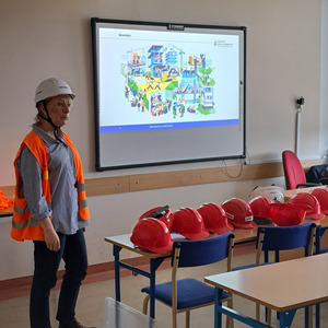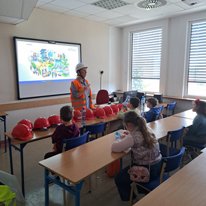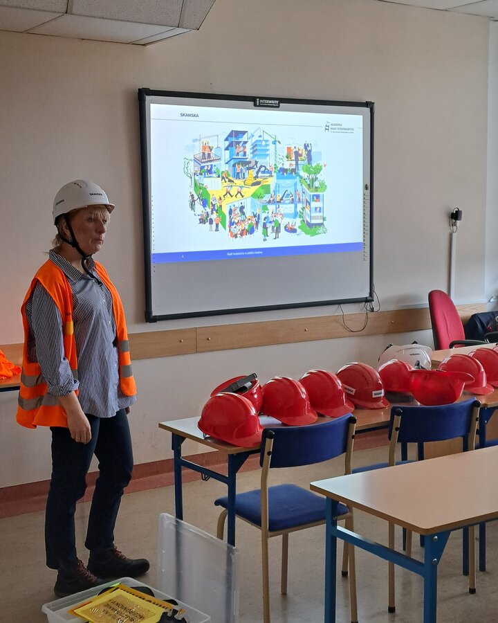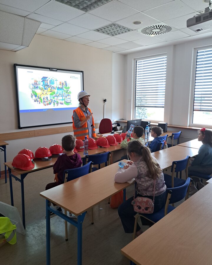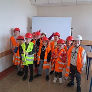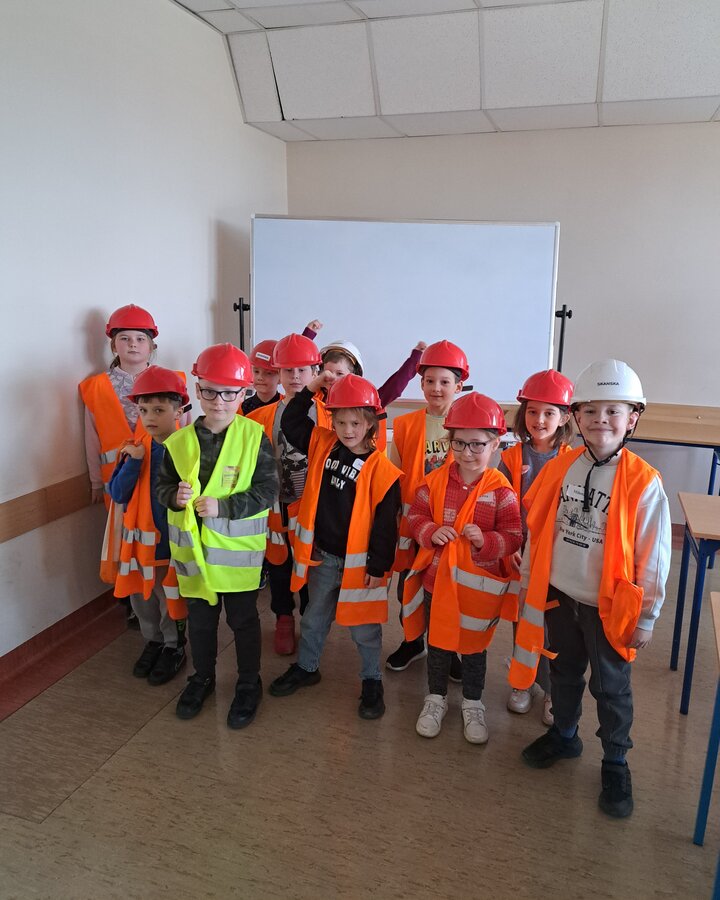 Podczas zajęć "Plac budowy oraz związane z nim zagrożenia. Bezpieczna droga do szkoły." uczestnicy poznali rodzaje budowli, dowiedzieli się jakie rodzaje zagrożeń mogą wystąpić na placu budowy i w drodze do szkoły, poznali rodzaje tablic informacyjnych. Ponadto dzieci miały możliwość przymierzenia kasków i kamizelek odblaskowych.