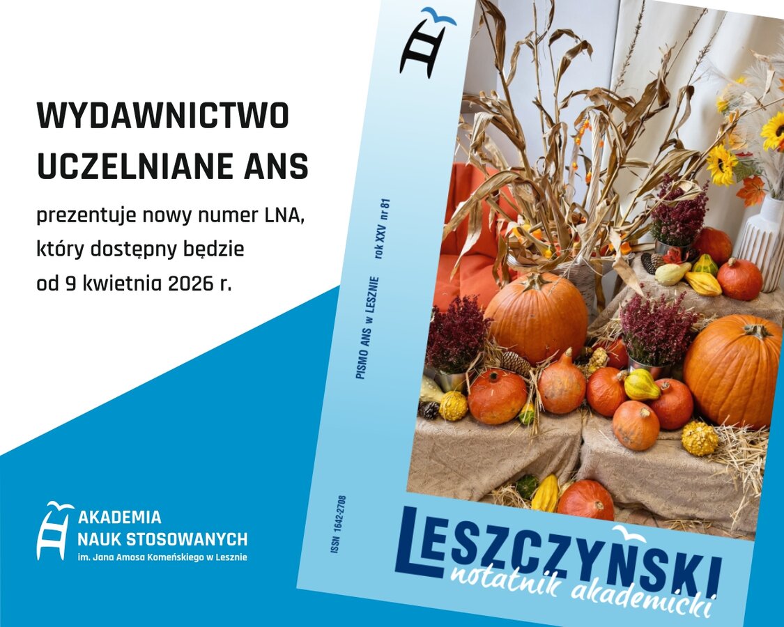 Wydawnictwo Uczelniane przygotowało nowy numer „Leszczyńskiego Notatnika Akademickiego”. Czasopismo otwiera ważny artykuł autorstwa Doroty Sipińskiej i Damiana Kędziory na temat zjawiska drop-outu, które w ostatnich latach narasta w sposób niepokojący, komplikując funkcjonowanie wielu uczelni w aspekcie finansowym i kadrowym. Poza diagnozą przyczyn rezygnowania niektórych osób ze studiów prorektorzy leszczyńskiej Akademii spróbowali opracować strategię przeciwdziałania zjawisku drop-outu, co czyni lekturę tekstu wyjątkowo wartościową. W podobnej tematyce utrzymany jest tekst Agnieszki Kociałkowskiej, która pisze o Radzie Dyrektorów szkół ponadpodstawowych, będącej motorem rekrutacyjnych sukcesów Akademii Nauk Stosowanych w Lesznie. Relację z Targów Pracy i Praktyk Studenckich 2025 pozostawiła Bianka Krzyżosiak. Dla gości z zagranicy dedykowana jest stała rubryka International academic news, w której zamieszczone są informacje o naszych działaniach międzynarodowych. Ponadto w niniejszym numerze opublikowano kilka relacji z konferencji naukowych, seminariów, wycieczki zakładowej i inauguracji roku akademickiego.